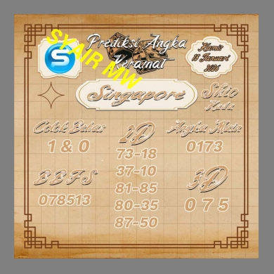 Syair SGP – Syair Singapore – Kode Syair SGP adalah sumber informasi yang sangat membantu anda dalam menentukan yang akan dipilih dalam permainan Togel Singapore. Dengan mengikuti Forum Syair SGP ini, Anda akan mendapatkan panduan terbaik untuk mengambil keputusan taruhan yang lebih cerdas dan akurat. Setelah anda mengetahui Prediksi SGP dari syair SGP kami,maka silahkan kombinasikan dengan hasil angka yang anda miliki.